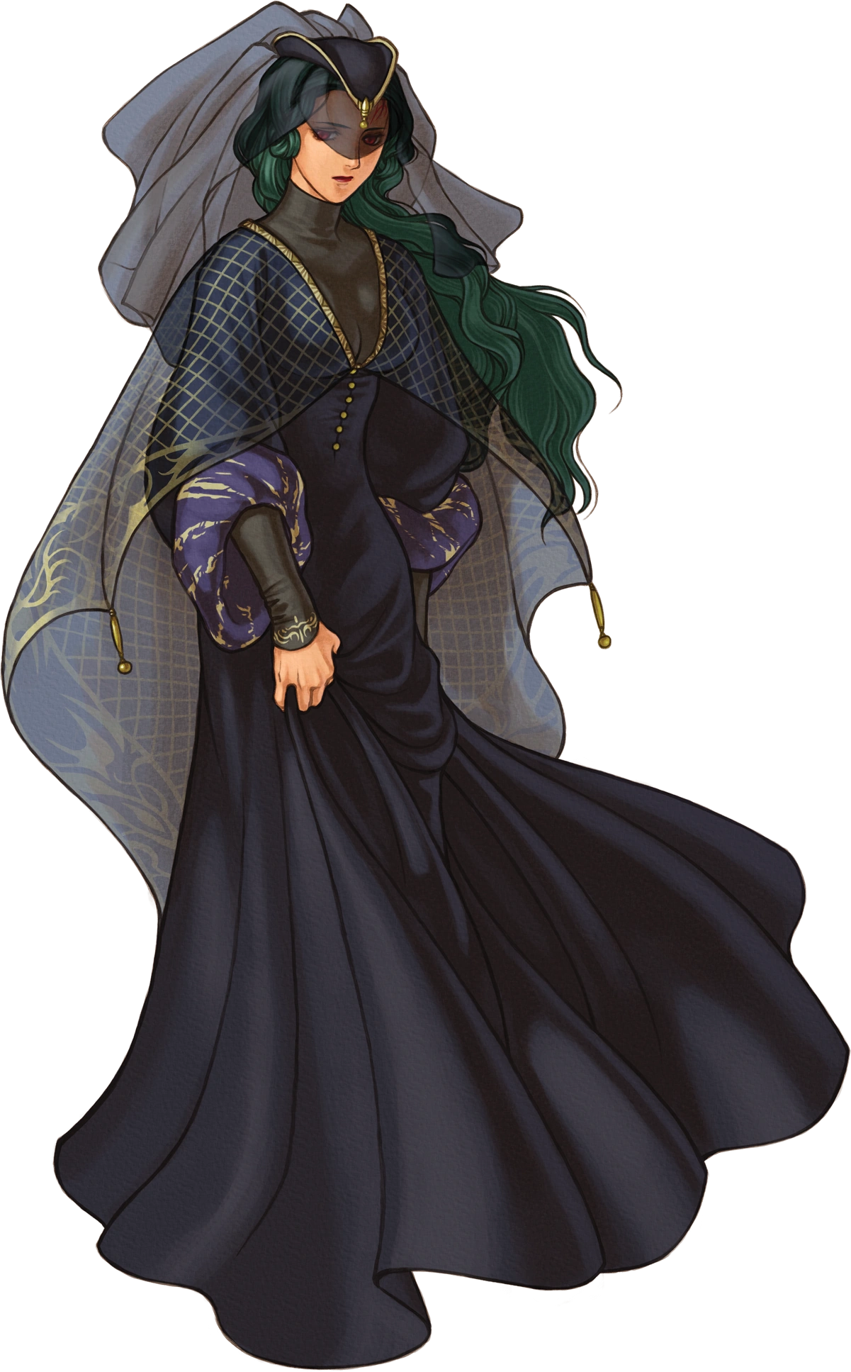Almedha es una mujer sobreprotectora, distante y autoritaria, tan agotada emocional y mentalmente por todas sus duras experiencias que en un momento afirma que preferiría que toda la gente de Daein muriera antes que perder a su hijo nuevamente. Su hijo Soren comparte incidentalmente algo de su naturaleza emocional, como se demuestra cuando le revela su pasado a Ike. Almedha también tiene una aparente desconfianza de Micaiah a pesar de los esfuerzos de Micaiah por ayudar al Príncipe Pelleas durante la lucha por liberar Daein y la posterior reconstrucción de la nación. En particular, parece ofenderse por el manejo más hábil de Micaiah de los asuntos militares y políticos con los que Pelleas lucha.
