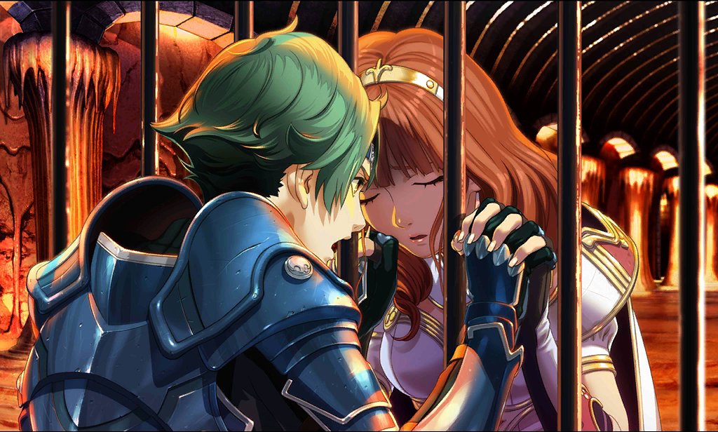 Alm meeting the imprisoned Celica in the basement of Duma Tower.