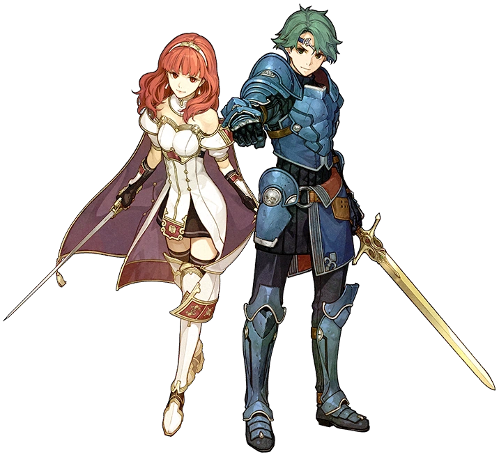 | Alm | A brave but kind young warrior, raised by the hero Mycen in Ram Village. His left hand is marked with the Brand. Celica's friend since childhood. | ||
