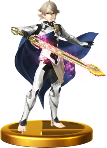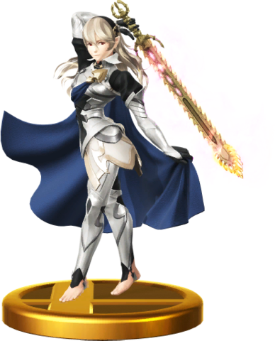 - Corrin is the only fighter in Super Smash Bros. for Nintendo 3DS and Wii U whose alternate trophy replicates game artwork in both games.