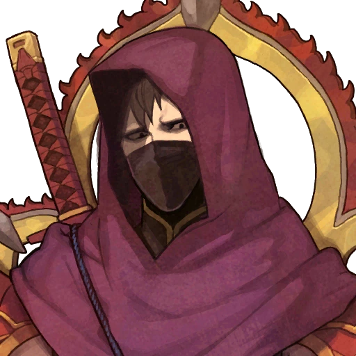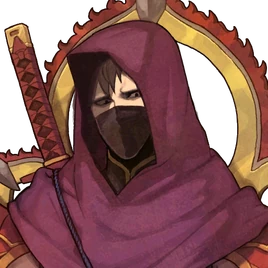 In Echoes, the class undergoes another redesign that only keeps the aforementioned Tachi from previous iterations and the face mask from Fates. New additions include a shawl with a hood, a gray breastplate worn over the red torso armor, arms covered in sashes and segmented red-and-yellow armor (with the pauldrons and right-elbow pad bearing resemblance to the Master Ninja's bladed sleeve pieces), and most notably the structure on their back that depicts one large flaming halo on top of a half-ring of five smaller flaming halos (the structure itself is alight with a fiery aura during battle). This design piece is likely inspired by Buddhist halos that are sometimes depicted as rings of fire. Only the unique enemies belonging to this class—Grieth, Xaizor, Cerberus, and Naberius—do not have this structure or the shoulder pads in their artworks, having replaced them with long capes for the former two and long cloaks for the latter two.