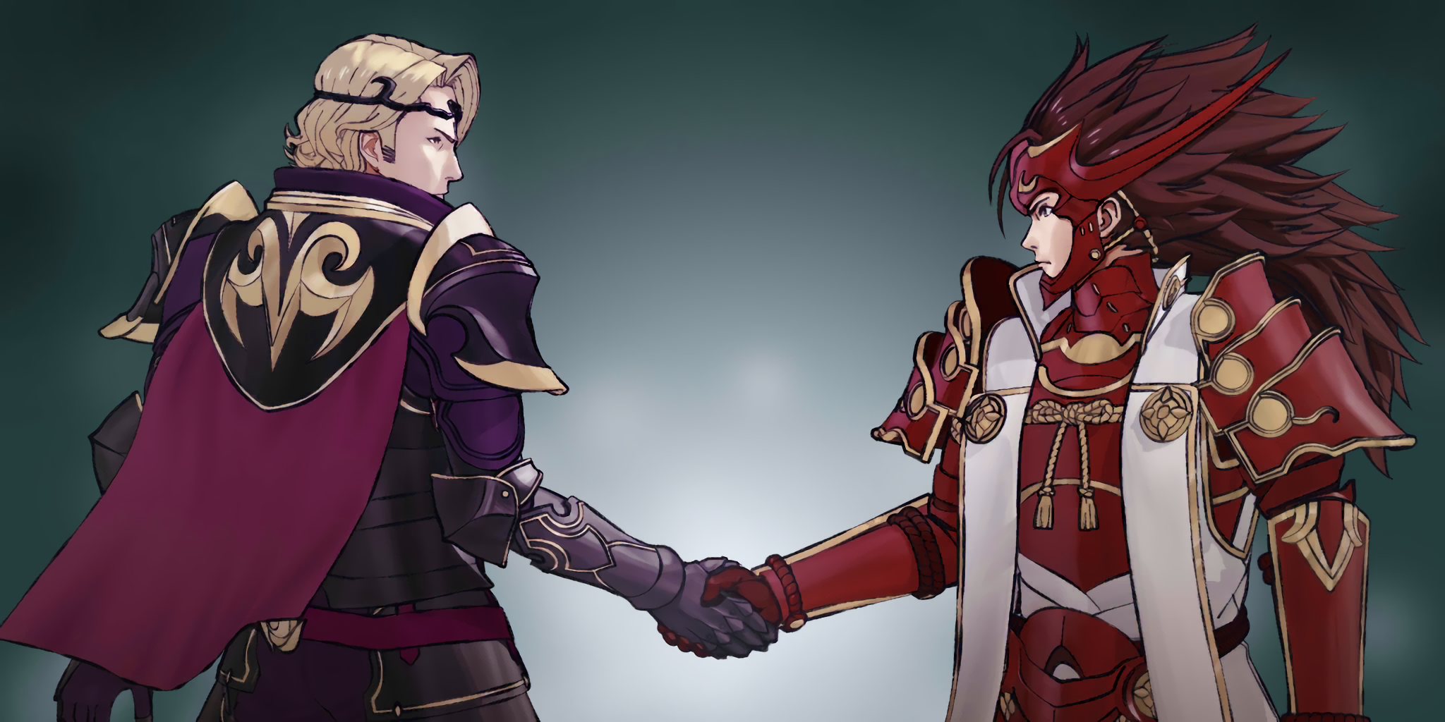 In the present, two nations were founded from two other dragons that rebelled against their kin. To the west is the Dark Kingdom of Nohr, a harsh realm of darkness and brimstone founded from the Dusk Dragon. It is currently led by King Garon with his eldest son Xander as Crown Prince. To the east is the Light Kingdom of Hoshido, a prosperous realm of light and nature founded from the Dawn Dragon. It is currently lead by Queen Mikoto with her stepson Ryoma as Crown Prince.