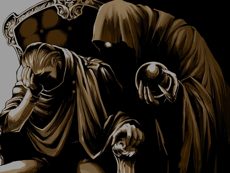 However, this was not to be, as Hardin's marriage with Nyna was far from ideal, and was, in truth, one that was marked with grief and unhappiness; while Hardin genuinely loved Nyna, this love of his went unrequited, for her heart was bound to another. When he later learnt that Nyna had married him out of the need for her to fulfill her responsibility as the direct descendant of the Archanean royal family, Hardin was struck with heartbreak and anguish, thereafter avoiding contact with anyone. Gharnef, delighting in Hardin's outpouring of moroseness, posed as a merchant in order to gain access into the palace before offering him the Darksphere. The Darksphere, fueled by Hardin's emotions of acrimony, sorrow and envy, quickly corrupted his soul, and he was transformed into a twisted, unscrupulous man who was devoid of any morals. Within a short frame of time, Hardin undid the prosperity that he had previously ceded upon Archanea, choosing instead to rule it with an iron-fisted tyranny, and thereafter expanded and spread his reign of terror throughout the rest of the continent. Later, when Gharnef requested him to hand Nyna over for the purpose of resurrecting Medeus, Hardin, his love for Nyna perverted by the Darksphere's corruption, willingly complied.