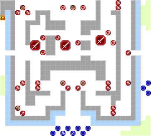 There aren't any reinforcements on this map, so there's no rush. Feel free to slowly bait enemies one at a time by plinking them with Curved Shot then retreating, or putting one tank in their threat range. Additionally, there's not really much advantage to pulling the levers; the trap floors impede enemy mobility as well, and make it easier for long-range mages and archers to shoot down Kingdom forces on the other side safely. Don't feel obligated to have your right-side 3 units actually charge in to the fortress; they can also head south and join up with your main team if you'd prefer to keep your forces concentrated.
