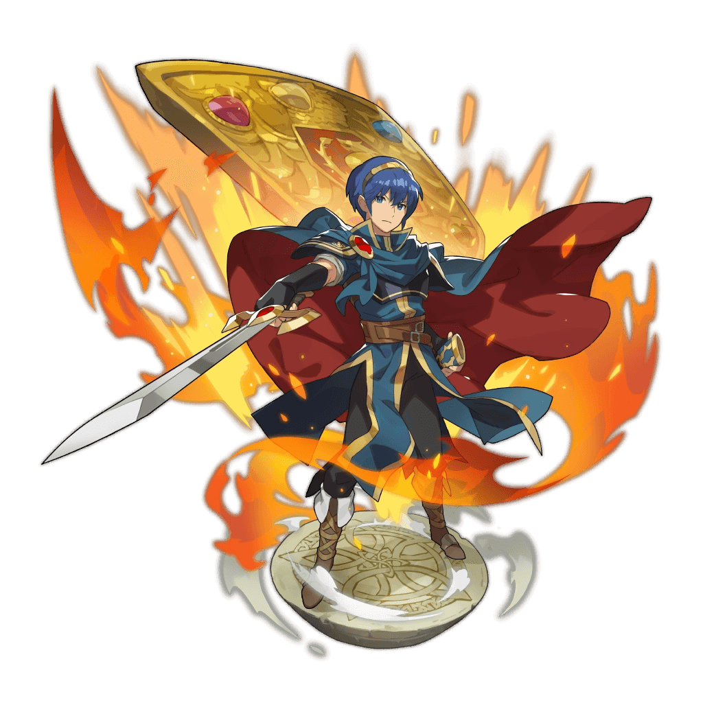 Marth is one of the twelve Emblems of Elyos. Marth's Ring of the Hero-King was placed on Alear's hand while they slept for 1000 years. After Alear's awakening, they are attacked by malevolent forces on their way to Lythos Castle. Desiring to protect Clanne and Framme, Alear invokes the power of the Ring, summoning Marth and engaging with them, allowing them to dispatch the Corrupted.