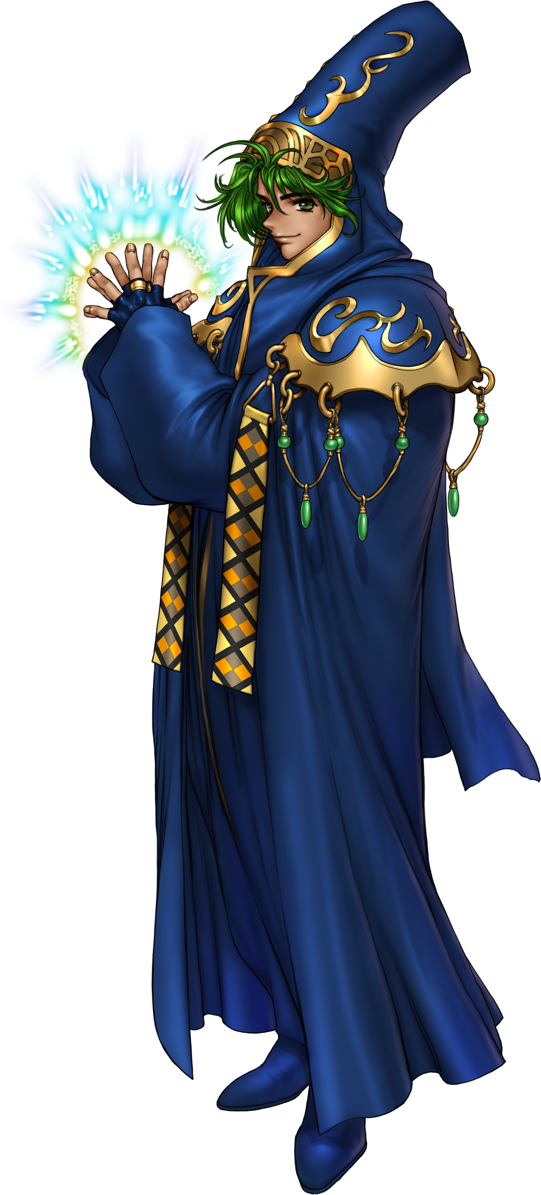 Merric is the first Mage obtained, and a generally solid unit. With enough Speed to double early enemies, he is an effective chipper, even if his Defense is somewhat on the low side. His high growths are another boon to him, with an abnormally high HP growth and Weapon Level enough to quickly use every tome, and his personal tome, Excalibur, is one of the best tomes available; Merric can reliably do 26 damage to most enemies, which will usually either kill them or reduce them to the point that others can finish them off. Its crit chance means Merric has a good chance to outright one-shot enemies.