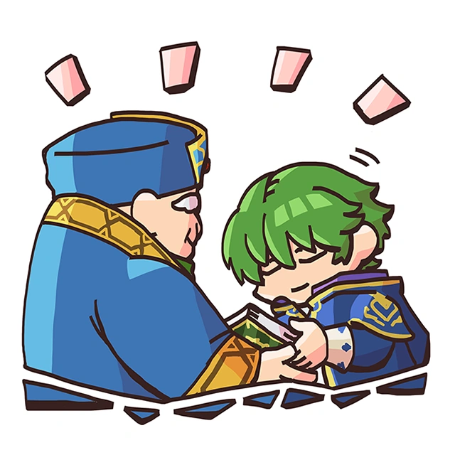He's also close to Elice, Marth's older sister. This is between you and me, but I hear they're more than just friends! I guess there was more than one reason why he worked so hard to study magic. | ||