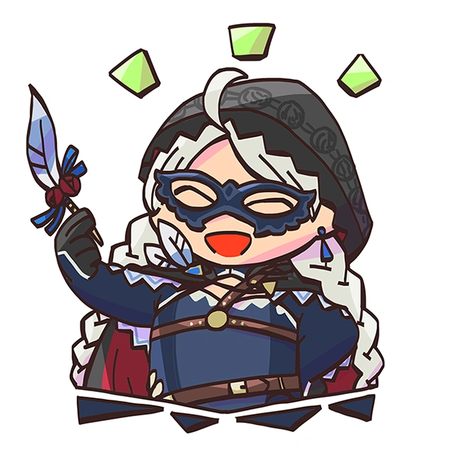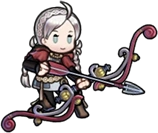 Her Duo skill grants her the ability to move one additional space, giving her a movement range of 4, and can attack any foe within six spaces of her, as such she can easily snipe a unit from well outside of range. It also inflicts a massive -7 to the stats of foes within the four cardinal directions of where she is facing and turns any bonuses that foe has into a penalty through a【Panic】debuff. To finally cement its breadth of abilities, it also regains a use on every turn count with an interval of three, meaning it is highly dangerous to underestimate her offensive abilities due to the range alone, though fortunately it is only used in the player's hands.