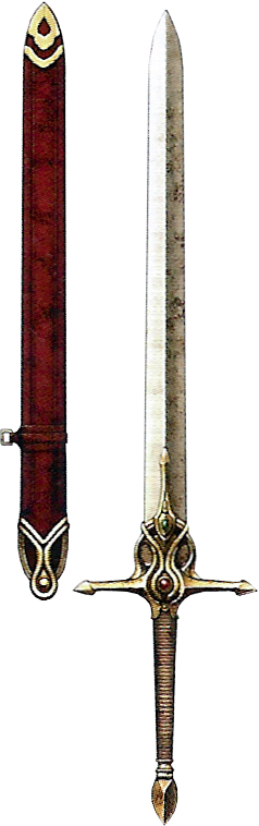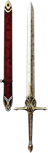 This sword was a gift sent by the Kingdom of Rigel to Zofia as a means to strengthen the bilateral ties forged between both nations. This powerful sword was not meant to be wielded by everyone, and so to ensure this, a special enchantment was placed on the sword. Those who do not bear the blood of royalty will find that the blade is too heavy to wield, let alone even pick it off of the ground. To those who are worthy, the blade is incredibly light and powerful. After the fall of the Zofian royal family, General Desaix raided the castle and took the sword for himself. However, being unworthy to wield the blade, he instead locked it away.
