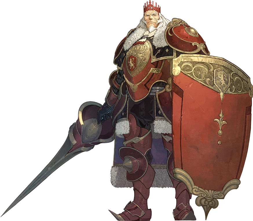 The fourth Emperor of Rigel, as well as a renowned general who stood on the battlefield from a young age with numerous victories to his name, Rudolf was chosen as the successor of Rigel III despite being only an indirect descendant due to his ability to wield Falchion and bearing the brand of Duma. Having had a strong relationship with Mycen in their adolescence, both were thoughtful yet hot-blooded men, who would stay up all night to debate Rigel's future and current state.