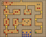 Asugi starts just east of your starting position in a locked room, using his Locktouch to open the doors in his path and attempt to escape. There are three doors blocking his path in a zig-zag formation, so he will take a while to escape due to being an unpromoted unit. As he is an allied unit, this is even further complicated because of the presence of two units right outside the last door.