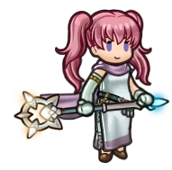 Absorb+ is her starting staff which restores her own HP based on 50% of the damage she dealt to her opponent. Thankfully she can inherit either Wrathful Staff or Dazzling Staff, the former allowing her staff damage to deal normal damage while the latter negates opponent counterattacks if she initiates combat. The downside is it has low Mt of 7, so her weapon damage is low on its own.