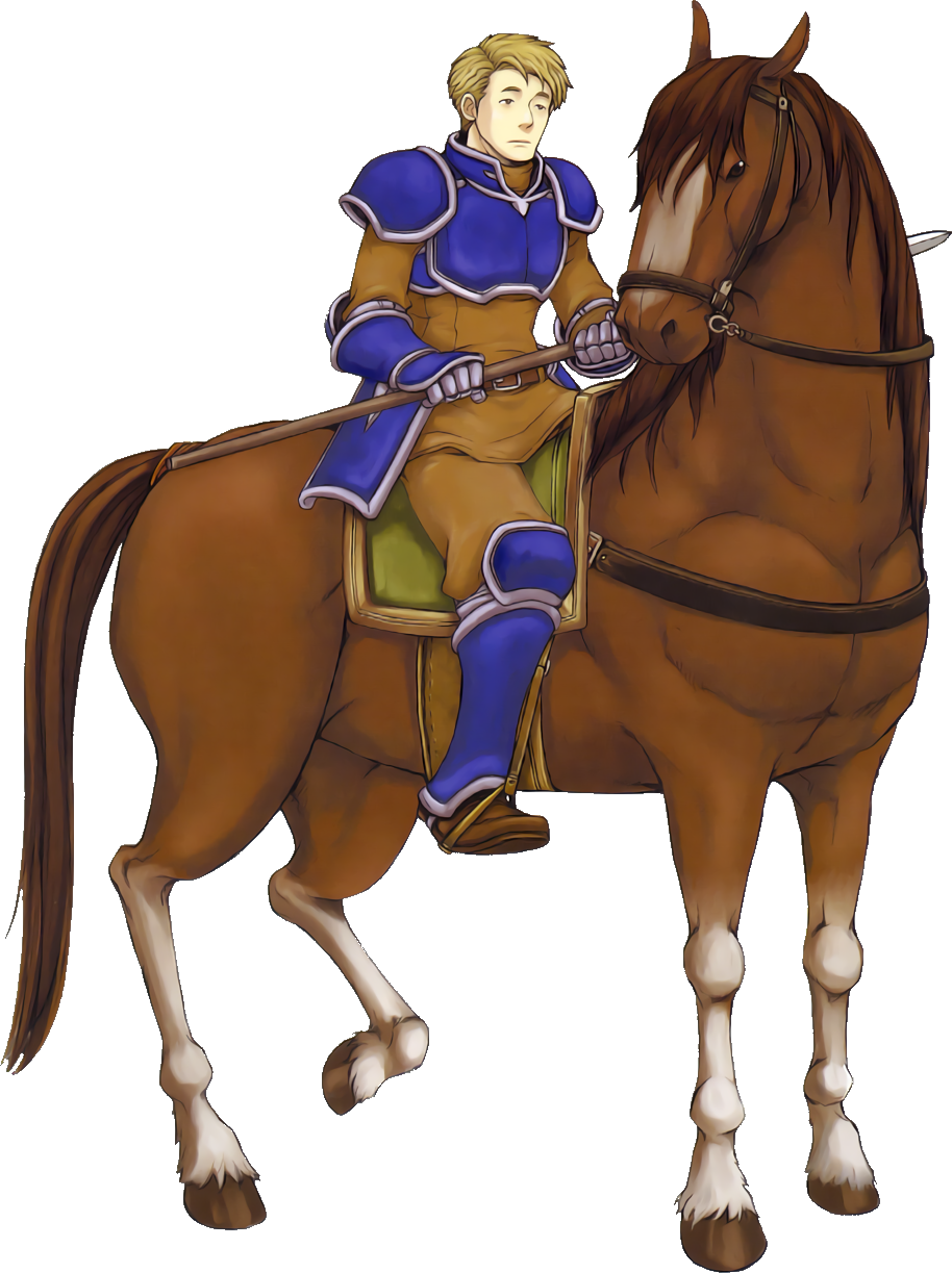 Unfortunately, his skill and speed are very average, he will not double attack as easily as the other Cavaliers. He will miss often when using lances or Steel weapons, at least until his Skill stat catches up. His starting weapon levels are not great for his joining time and his lack of doubling will only have him slip behind the other cavaliers even more.