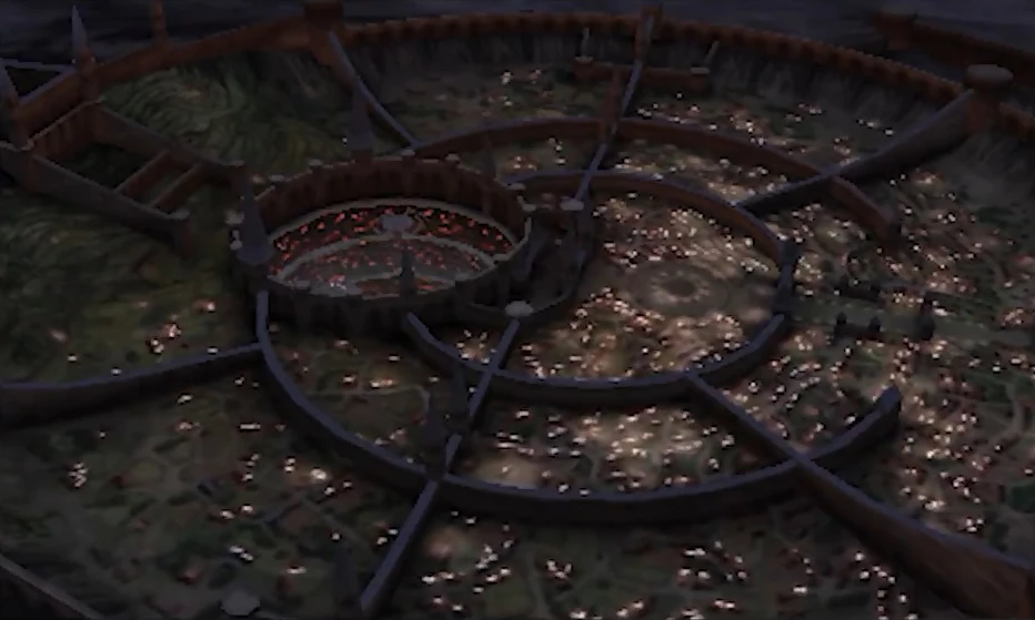 Windmire is the capital of the Kingdom of Nohr in Fire Emblem Fates. Located deep within Nohr's northwestern territory, southwest of the Northern Fortress, the city is ringed by a series of circular walls. At its heart is a vast, excavated pit that holds Castle Krakenburg, the home of the Nohrian royal family. During the events of Fates, King Garon directs the Nohrian war effort from Windmire.